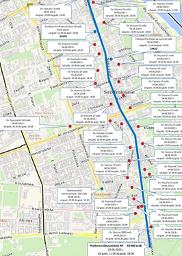 Zgłoszonych zostało w Warszawie aż 39 zgromadzeń. Na stronie opublikowano plan wszystkich spotkań. W mapy wynika, że większość z nich znajduje się w pobliżu trasy marszu Platformy Obywatelskiej.: