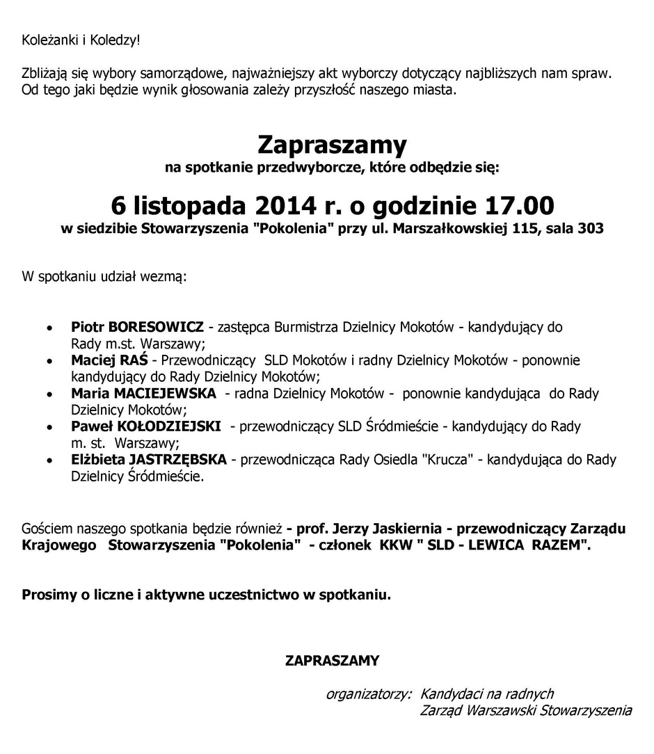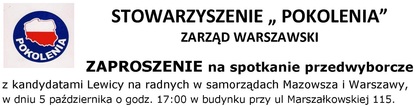 Zarząd Warszawski POKOLEŃ wraz z SLD Warszawa zaprasza: