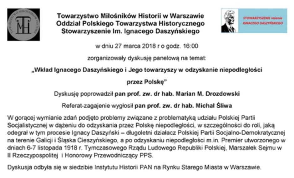 "Lewica jest potrzebna polskiej demokracji. Jest potrzebna dla równowagi polskiego systemu politycznego, jest potrzebna dla obrony interesów pracowniczych" – mówił Aleksander Kwaśniewski podczas odsłonięcia pomnika Ignacego Daszyńskiego. "Daszyński miał odwagę powiedzieć bardzo jasno: Polska będzie demokratyczna, świecka i wolna" – mówił Adrian Zandberg.