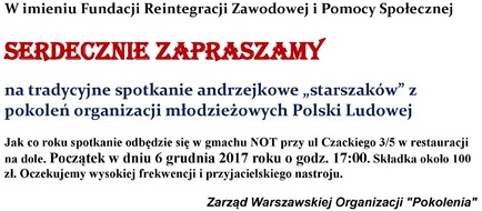 Stowarzyszenie "POKOLENIA" > Zarząd Warszawski zaprasza:
