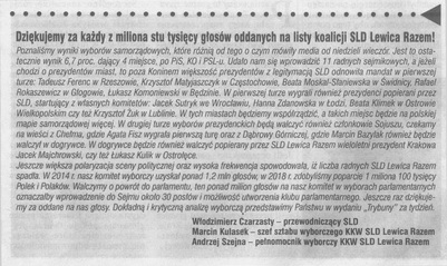 Nie jest to jednak powód do troski, gdyż nawet idąc do wyborów podzielona (na trzy listy) opozycja pokona Prawo i Sprawiedliwość. Tak sądzi Robert Biedroń, który zarazem uważa, że idąc do wyborów osobno lewica uzyska dobry wynik i będzie miała realny wpływ na kształt polityki polskiej (Dziennik Trybuna 17-19 marca br.). Nie podzielam tej prognozy i uważam ją za wyraz pesymizmu. Swoje stanowisko streszczę w czterech punktach. (...)