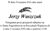Z wielkim smutkiem informujemy o śmierci naszego kolegi Jerzego Waszczuka, który ostatnie lata życia, zdobytą wiedzę i doświadczenie poświęcił działalności Stowarzyszenia "POKOLENIA". Żegnamy człowieka aktywnego zawodowo i społecznie, który do końca swych dni był wierny wyznawanym ideałom.