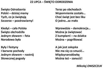 Niech rozwija się nasza wolna od stulecia Ojczyzna i pięknieje jej stolica, nasze miasto – Warszawa.