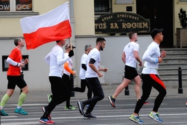 w największym biegu z cyklu Warszawskiej Triady Biegowej wystartowało aż 20 000 uczestników. Zawodnicy wystartowali symbolicznie - o godz. 11.11. Część z nich przywdziała białe koszulki, druga część czerwone. Razem utworzyli wielką flagę Polski.