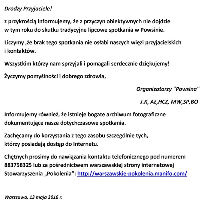 Korzystając z bogatego archiwum fotograficznego Henia Czerskiego na dodatkowych "Zakladkach" podstrony "Spotkania w Powsinie" publikować będziemy kolejno, ale we "wstecznym" porządku wybrane zdjęcia z tych tradycyjnych lipcowych spotkań przyjaciół, jakie corocznie odbywaliśmy w pieknej scenerii Ogrodu Botanicznego w Powsinie.Zaczynamy od fotogalerii z ubiegłorocznego spotkania - znajdziecie ją w specjalnej zakładce: