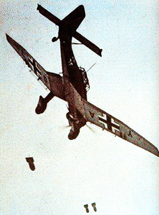 Największe spustoszenie czyniły jednak samoloty. Po 15 sierpnia Niemcy rozpoczęli systematyczne bombardowanie Starówki. Użyli do tego czterech (a później trzech, gdy jeden z nich został zestrzelony) samolotów nurkujących Ju 87 startujących z lotniska na Okęciu. Regularnie, co pół godziny (z przerwą na obiad) eskadra tych samolotów pojawiała się nad Starówką i z niskiego pułapu zrzucała ciężkie, kilkusetkilogramowe bomby, po czym odlatywała do bazy. Wieczorem i w nocy nalotów nie było. Samoloty latały tak nisko, że można było dostrzec pilota w kabinie oraz obserwować spadające bomby. Było to wrażenie okropne, gdy widziało się lecącą z góry bombę oczekując czy spadnie ona na głowę czy obok. Najbezpieczniejszym miejscem były barykady w pobliżu pozycji niemieckich, na które bomb nie zrzucano bojąc się razić własnych żołnierzy.