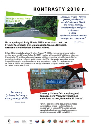 W dniu 28 lipca 2018 roku na cmentarzu w Sosnowcu, przy ul. Zuzanny odbyła się Uroczystość z okazji XVII. rocznicy śmierci Edwarda Gierka. Uroczystość prowadził i znaczenie dekady Edwarda Gierka w wystąpieniu omówił Maciej Gadaczek. Głos zabrali również Jacques Kmieciak z miasta Auby (Francja) i prof. Paweł Bożyk, przewodniczący Ruchu Odrodzenia Gospodarczego. W swoim wystąpieniu prof. Adam Gierek, podkreślił rolę utrwalania pamięci narodowej i w tym kontekście znaczenie dekady Edwarda Gierka w okresie Polski Ludowej.